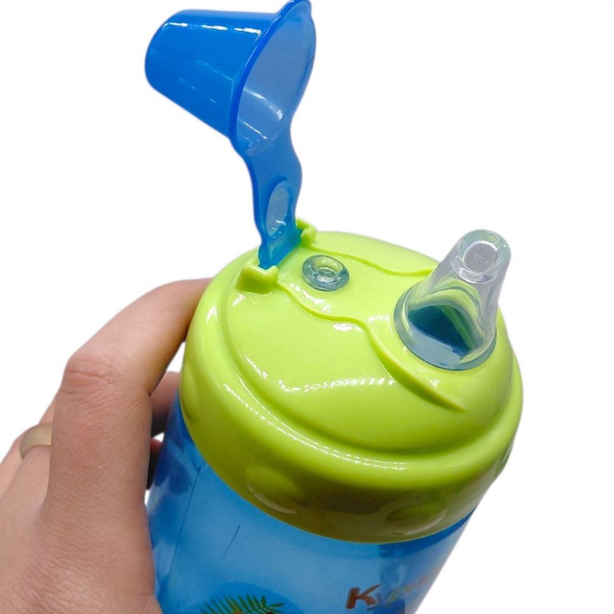Поїлка виготовлена з якісного пластику та оснащена кришкою з м’яким силіконовим носиком, який зручний для дитячих ясен та зубів. Конструкція запобігає проливанню рідини під час нахилу або падіння.