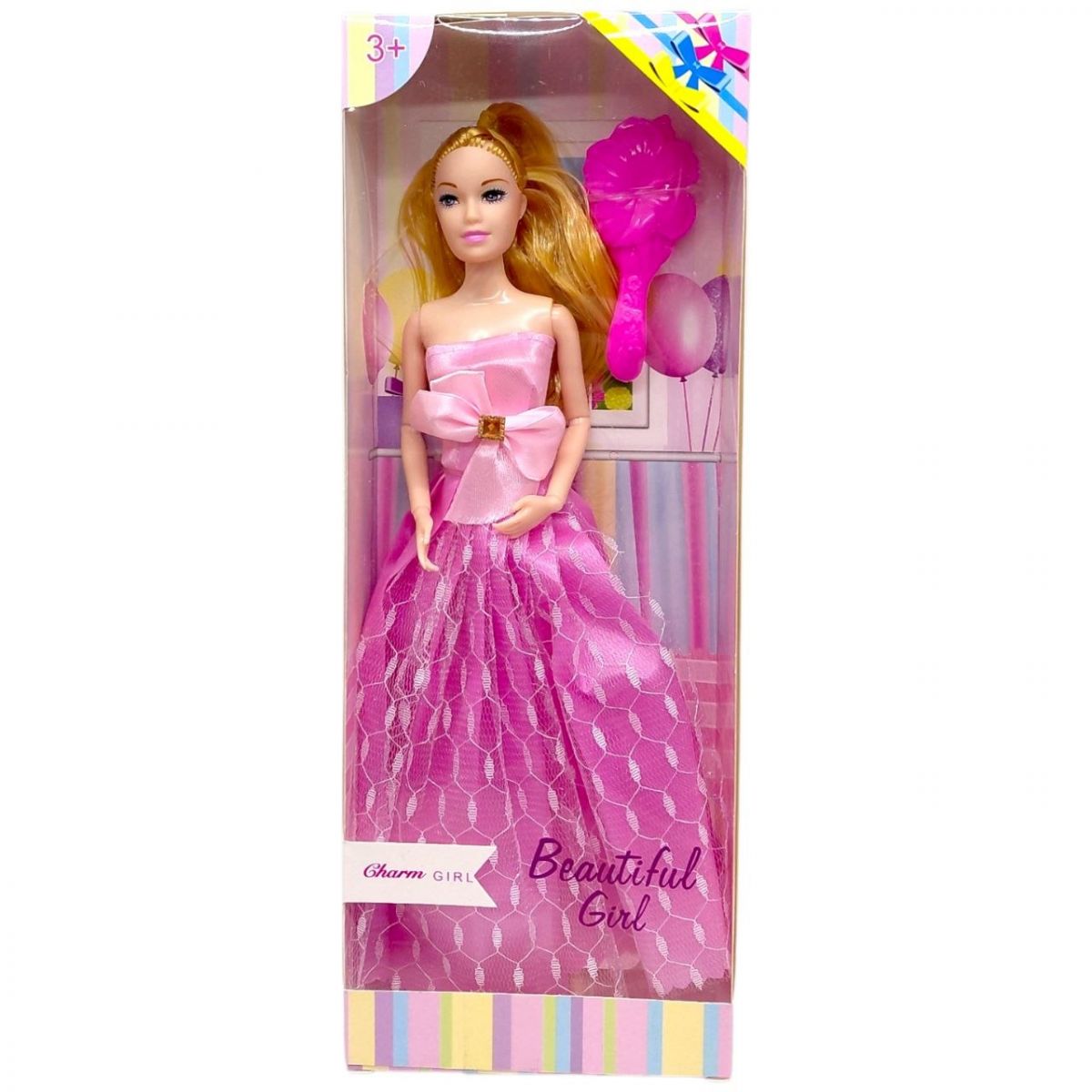 Лялька сукні з бантом святкова (РОЖЕВА) MIC D200-217