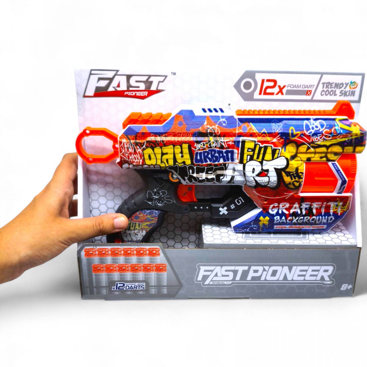 Іграшковий пістолет з барабанним механізмом та м’якими набоями — динамічна розвага для активних ігор. Модель оснащена обертовим барабаном, що додає реалістичності процесу стрільби, а м’які патрони забезпечують безпечне використання. Яскравий дизайн у стилі графіті привертає увагу та робить іграшку бажаною для дітей. Виготовлений із пластику, підходить для дітей від 8 років, сприяє розвитку координації та реакції.