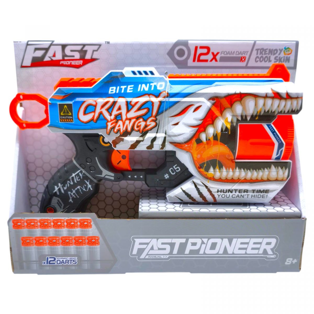 Іграшковий пістолет мех. з барабаном та мʼяк. набоями (12 шт.) (Божевільні Ікла) (28 х 17,4см) MIC BH133