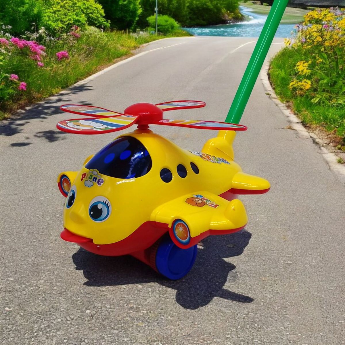 Каталка Вертоліт на паличці, з дзвіночком (жовтий) MIC 0323