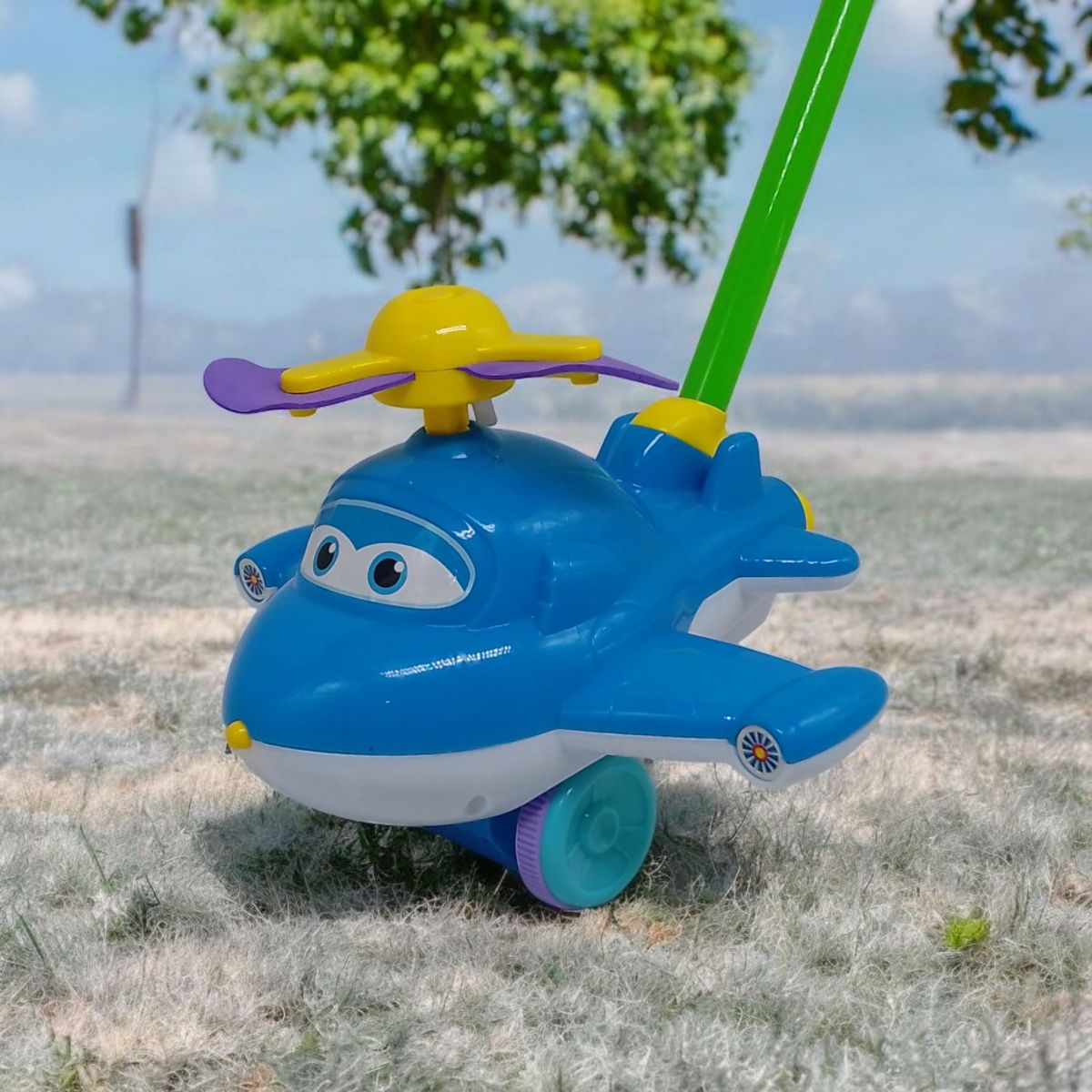 Каталка з ручкою Літак, світло (синя) MIC 9909A