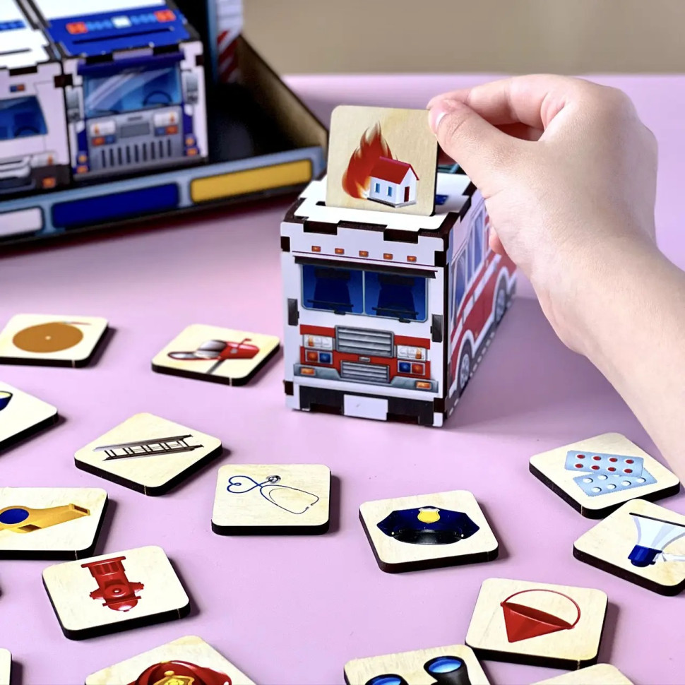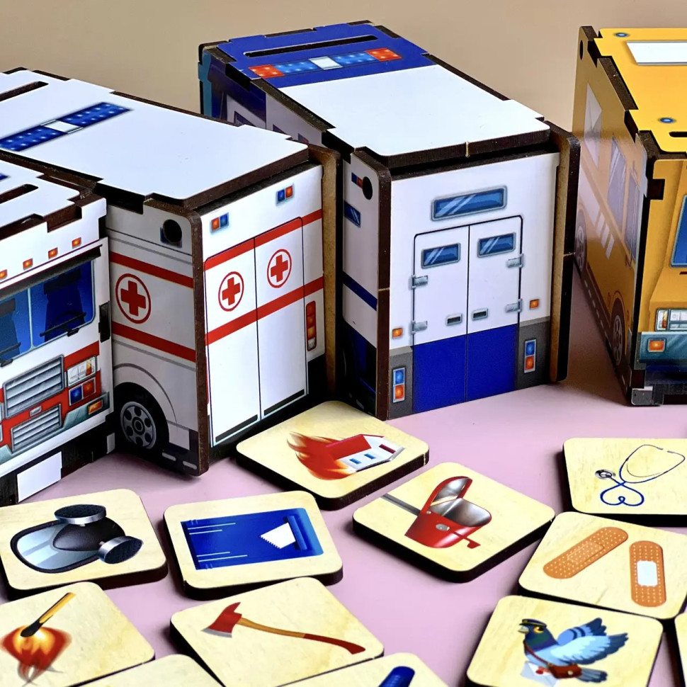 Дерев'яна настільна гра "Службовий транспорт" Ubumblebees (ПСФ027) PSF027 сортер-комодик