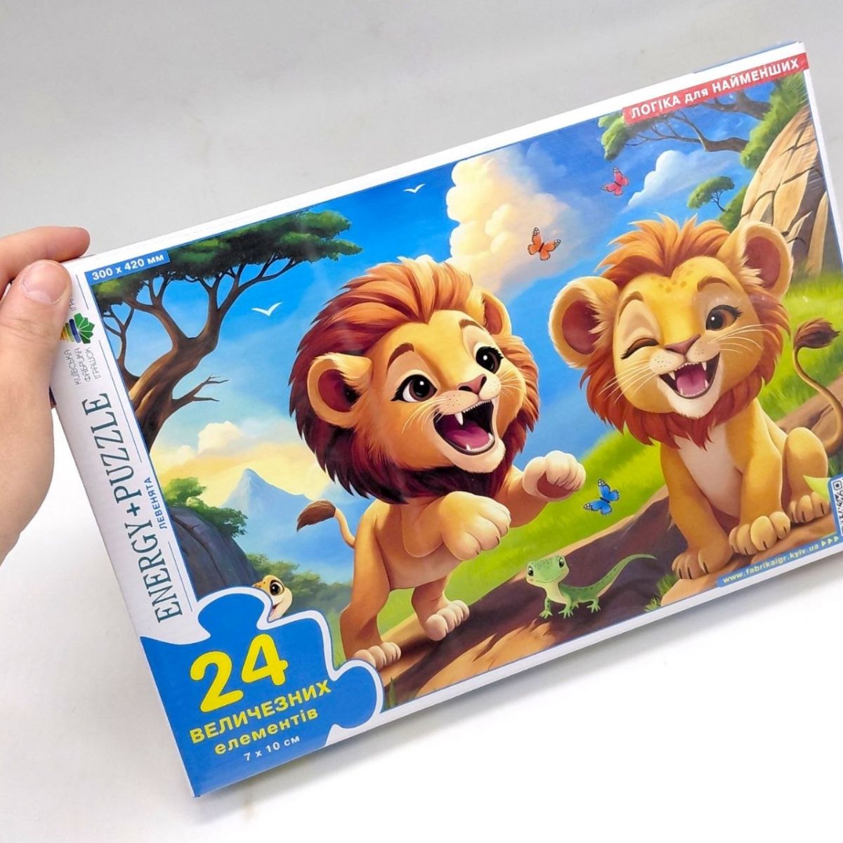 Пазл «Левенята» на 24 елементи — це яскрава розвиваюча гра для дітей, яка поєднує захопливий сюжет і оптимальний рівень складності. Картинка з милими персонажами привертає увагу та мотивує дитину складати пазл до кінця. Деталі зручні для дитячих рук, добре стикуються між собою. Гра підходить для дітей від 3 років, допомагає розвивати логічне мислення, уважність, посидючість і дрібну моторику у легкому і цікавому форматі.