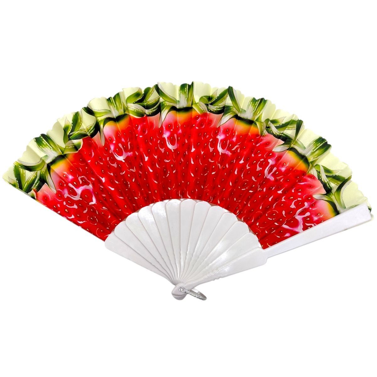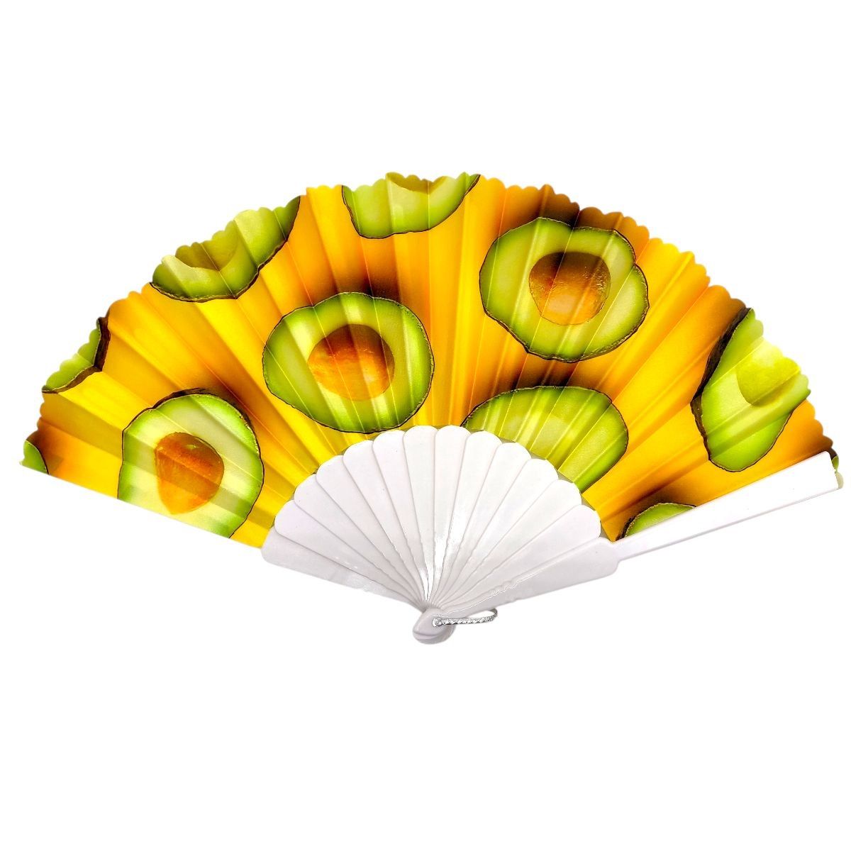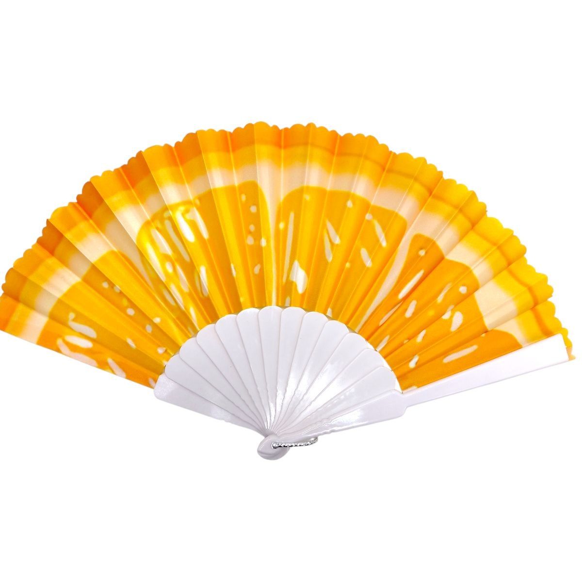 Стильний ручний віяло з яскравим принтом — практичний аксесуар для спекотних днів. Легка конструкція та зручна форма забезпечують комфорт у використанні. Основа з міцного пластику, розкладний механізм працює плавно. Підходить для повсякденного використання, подорожей і заходів, додає образу виразності.
