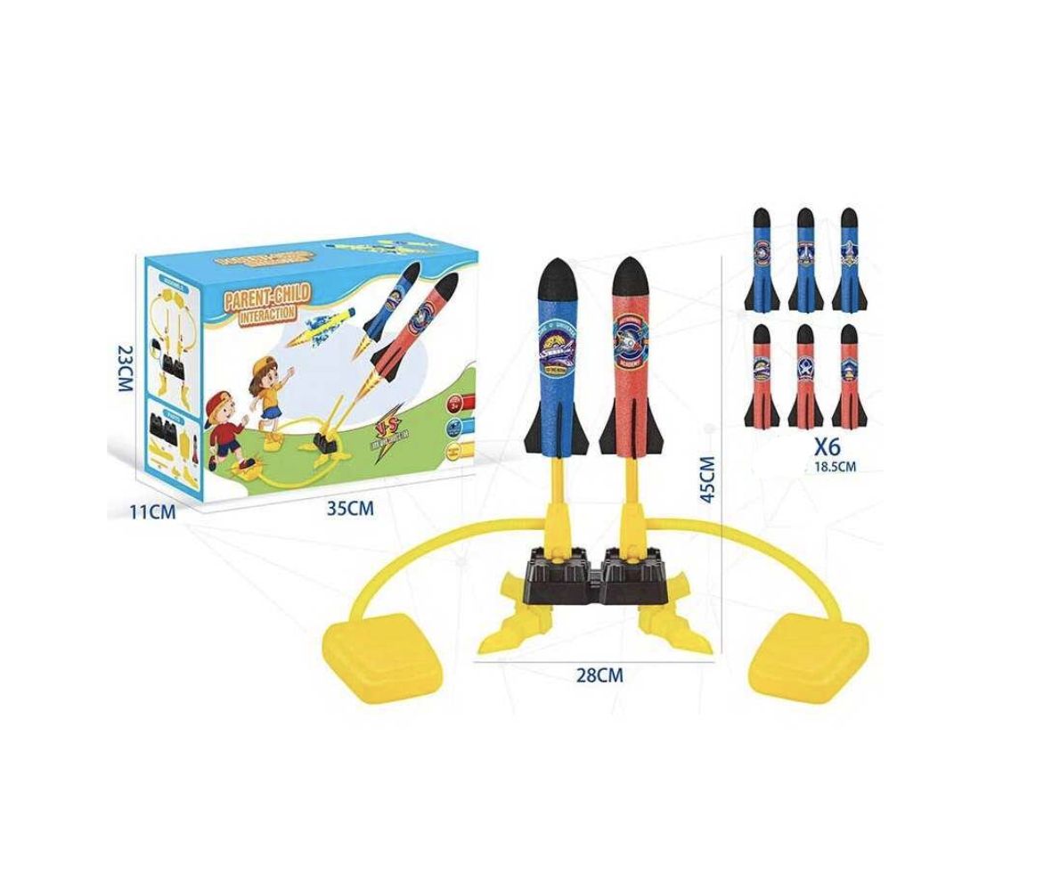 Ігровий набір із запуском м’яких ракет підходить для активних розваг на вулиці. Запуск здійснюється натисканням на платформу, що дозволяє ракетам злітати вгору. Легкі та безпечні матеріали роблять гру комфортною. Рекомендовано для дітей від 3 років.