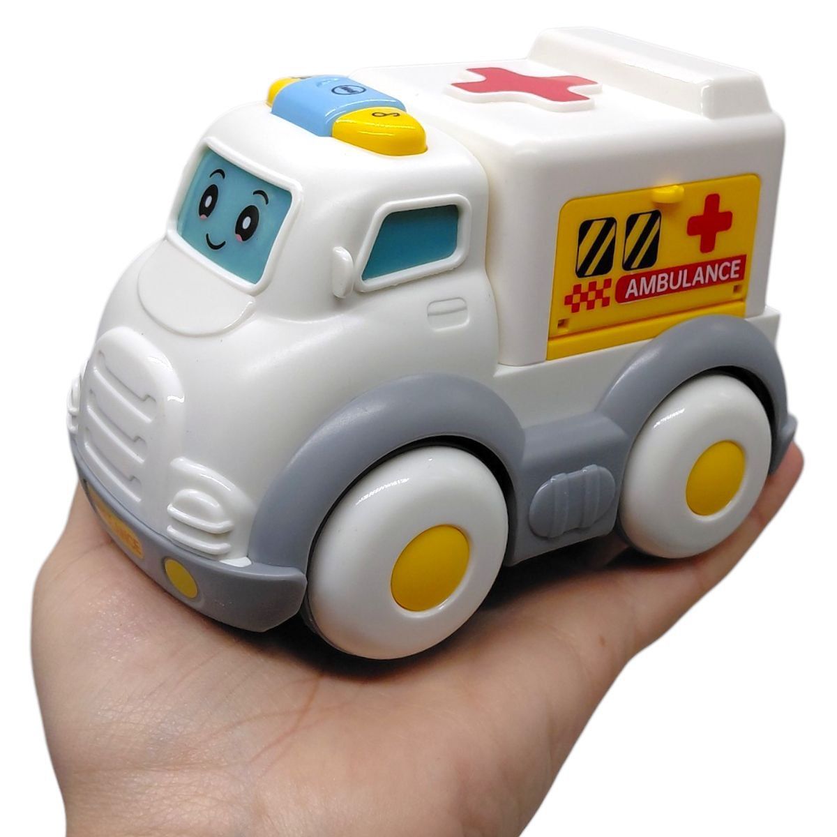 Музична машинка «Швидка допомога» виконана у стилі реального медичного автомобіля. Іграшка оснащена світловими ефектами та звуковими режимами, що відтворюють мелодії, пісні та тематичні сигнали.