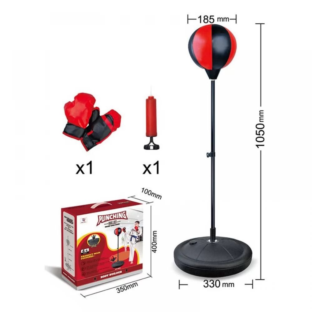 Боксерська груша на стійці — відмінний варіант для активних ігор і перших тренувань вдома. Регульована по висоті конструкція дозволяє підлаштувати рівень під зріст дитини, а стійка основа забезпечує стабільність під час ударів. У комплекті є рукавички та насос для зручного використання. Модель підходить для дітей від 4–5 років, допомагає розвивати координацію, силу удару та витривалість, сприяє фізичній активності та зняттю енергії.