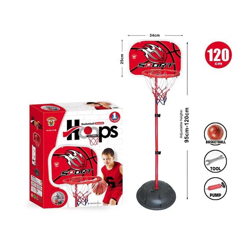 Дитячий баскетбольний набір складається зі стійки з кільцем та сіткою. Конструкція виконана з легких матеріалів, що забезпечує зручність у встановленні та використанні. Набір дозволяє організувати власний спортивний майданчик у кімнаті або на подвір’ї.