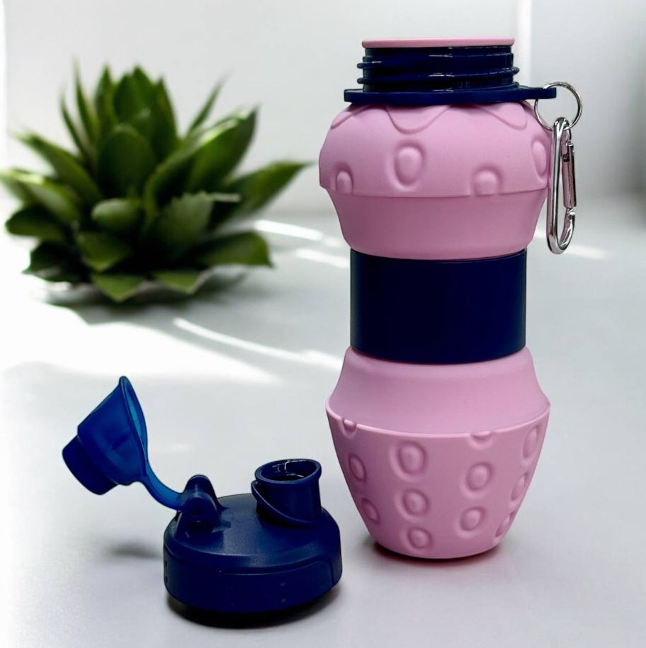 Пляшка для води розкладна Полуниця (силікон) 600 мл, рожева MIC сk4-1046