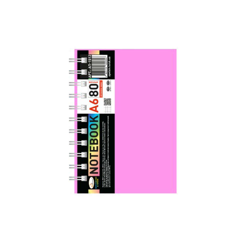 Блокнот А6 АП-1512(Pink) 80 аркушів, пружина збоку