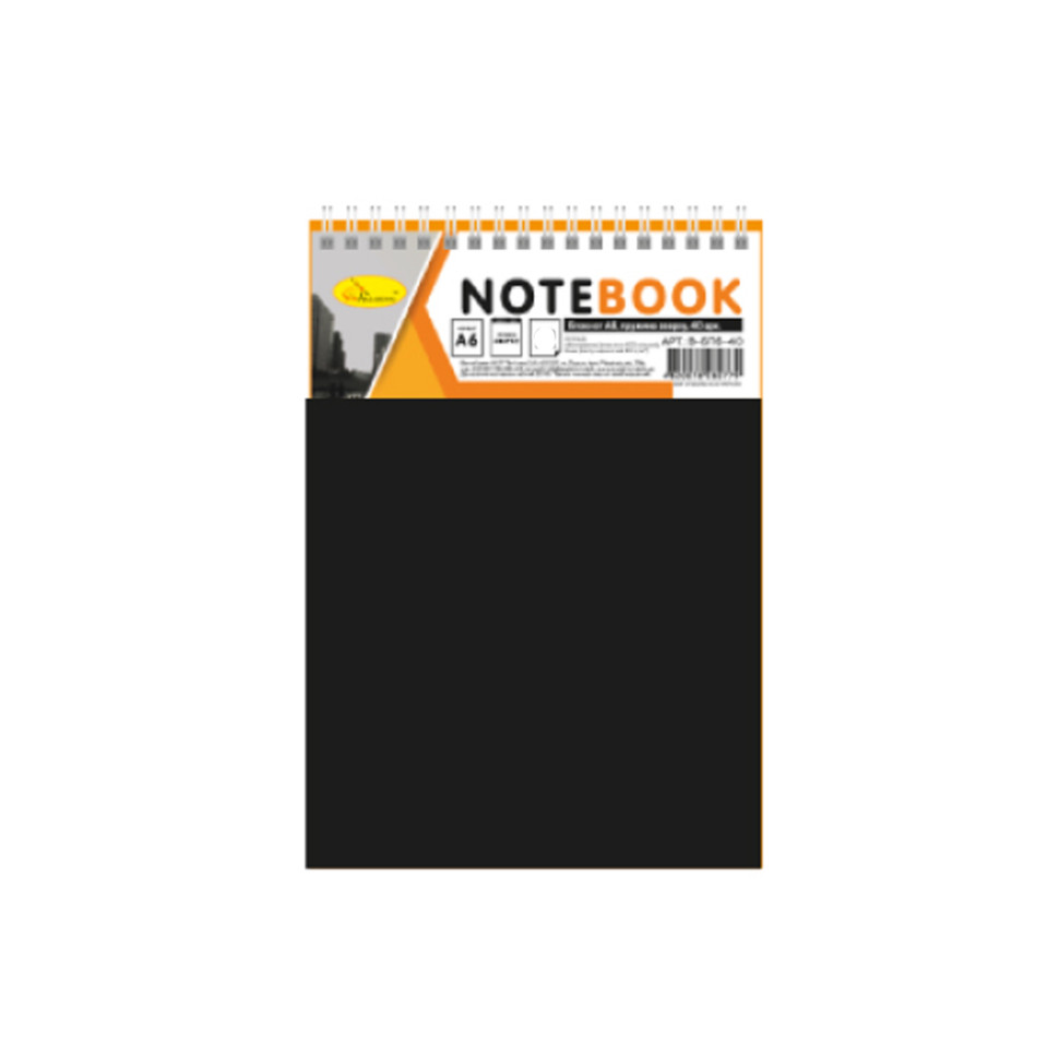 Блокнот А6 В-БП6-80, 80 листів, пружина зверху Чорний