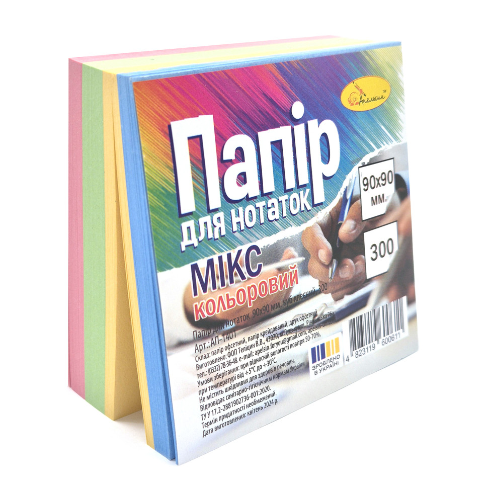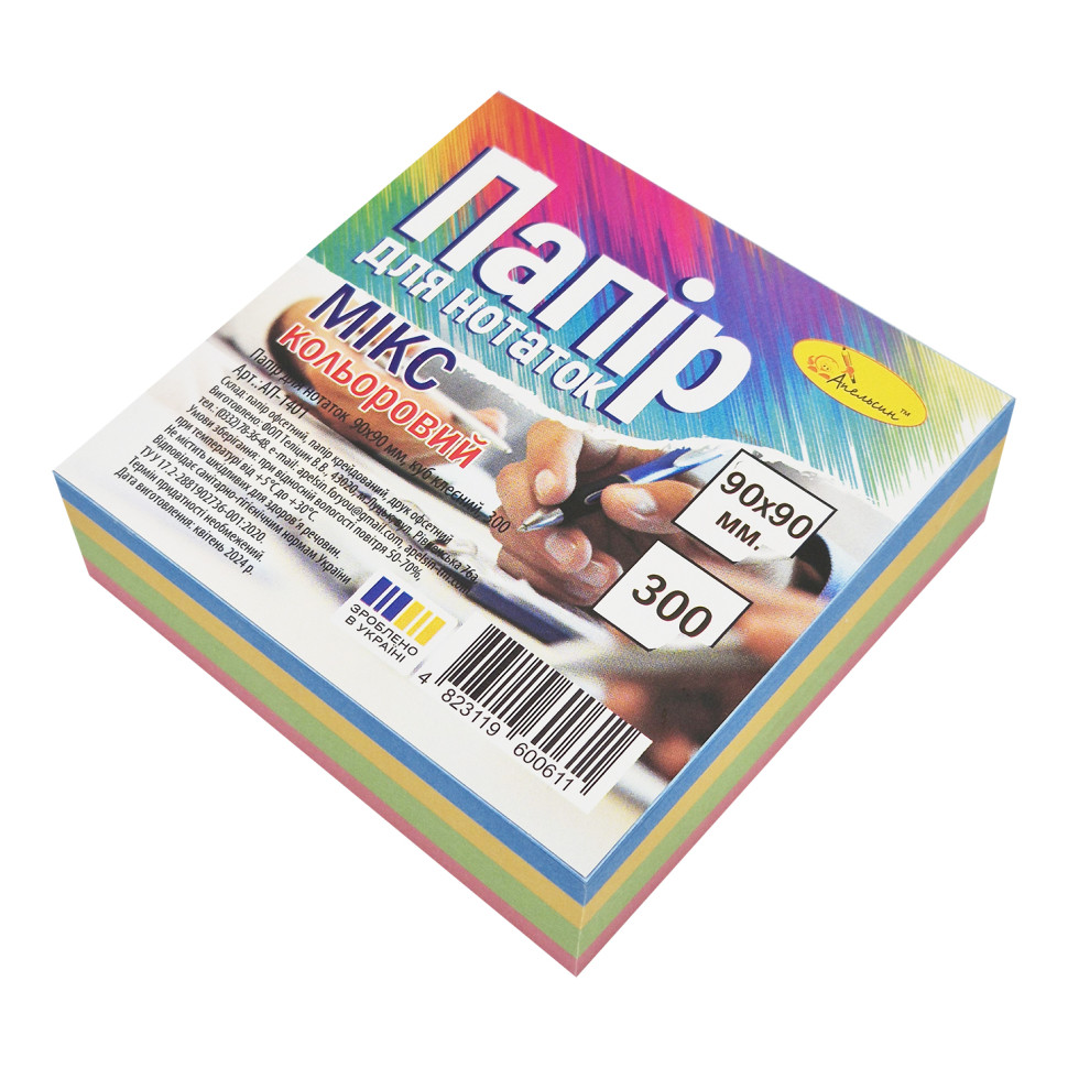 Папір для нотаток "Мікс" АП-1401, 9х9 см, 300 аркушів, клеєний, куб