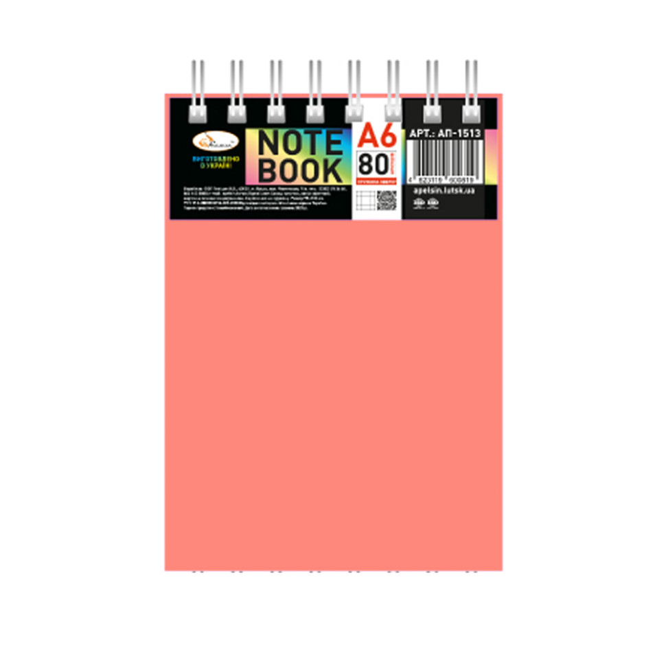 Блокнот А6 В-БП6-80(Orange) 80 аркушів, пружина зверху