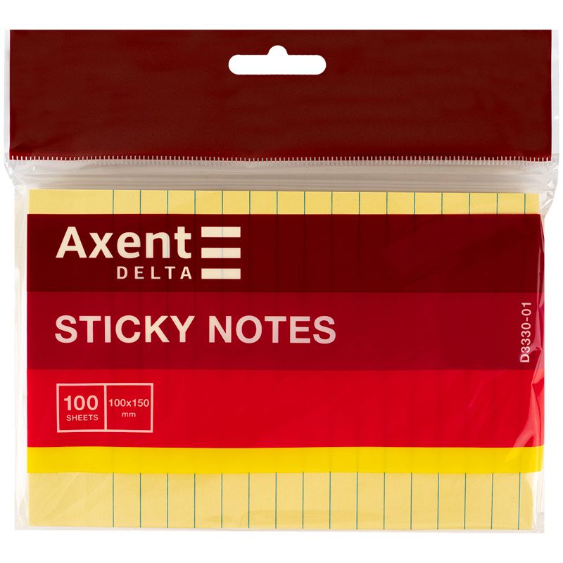 Блок паперу з клейким шаром 100x150мм,100арк.лінія Axent D3330-01
