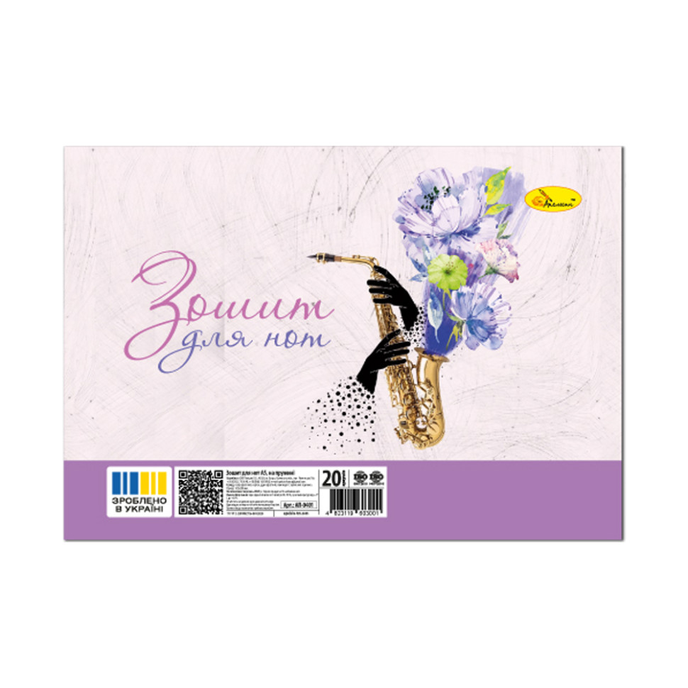 Зошит для нот АП-0401-3 А5 на пружині, 20 аркушів